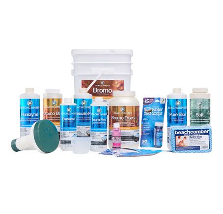 This kit includes the following products : Floating Dispenser *, Bromo Discs 2 kgs, Bromo Blast 900 g, Eliminate 500 ml, Eliminate Plus 1 L, Purezyme 1 L, Pure Blue 1 L, Foam Free 500 ml, Test Strips, Hydro Mop, Filter Savers, Measuring Cup and Signature Scentsation Fragrance sample.